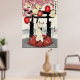 Playful Japanese Cat Art Sakura Blossoms Lanterns Poster