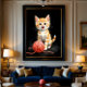 A joyful and mischievous kitten, centered against a deep black background, gazing straight at you as if inviting play. Warm lighting, soft details, and a charming ball of yarn create a cozy, peaceful mood that brings life and happiness into any space. Designed to work beautifully as wall art and art prints, this illustration also adapts naturally to everyday items such as mugs, cups, and home décor, making it easy to enjoy this playful moment throughout daily life. An elegant choice for cat lovers and modern interiors.