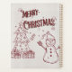 A cute, playful doodle like illustration of a snowman in front of a Christmas Tree, surrounded by ornaments and gifts.