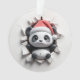 This enchanting, double-sided ornament showcases an adorable 3D panda cub. The front playfully peeks from a fractured white surface, radiating pure festive joy with its innocent eyes and soft red Santa hat. The back seamlessly continues the whimsical broken texture, showing the panda from behind. This piece adds a charming, delightful highlight to any holiday decoration.