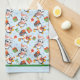 A Cute Christmas Kitchen Towel Of Playful Penguins With Gifts On A Blue Background