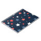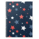 This bold and playful star pattern notebook features a modern mix of red, white, and blue stars scattered across a deep navy background.