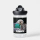 Kindergröße, klare Plastikflasche, die das Foto von einigen Sea Otters zeigt, die mit einem Kugelspielzeug spielen, zusammen mit einem in weißen, fett gedruckten Kindernamen. Personalisieren Sie die Wasserflasche, indem Sie den Namen bearbeiten und durch den Namen des Kindes ersetzen. Wählen Sie Ihre Farbe der Wasserflasche aus.
