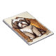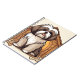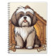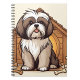 A cute brown‑and‑white Shih Tzu sits in front of a wooden doghouse, surrounded by playful cartoon bones. A warm, cheerful design perfect for dog lovers.