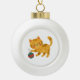 Celebrate the season with a touch of feline charm. This glossy white ornament features a heartwarming illustration of an orange tabby cat, eyes closed in bliss as it paws at a festive green and red bauble. With its gold cap and hanging loop, it’s ready to adorn your tree or gift to a fellow cat lover. Perfect for adding whimsy and warmth to your holiday décor, this ornament captures the joy of Christmas through the eyes of a curious kitty.