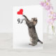 Gray tabby cat with red heart balloon for 93rd birthday on white background.