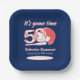 Step up to the plate for a legendary celebration! ⚾ This sporty 50th birthday design features the bold number 50 filled with a baseball pattern and topped with a classic baseball helmet, all in red and white on a dark blue background. The playful text “is playing his 50th inning” and “Welcome to home base” sets the tone for a fun, all-star celebration.
