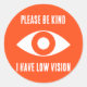 Please Be Kind, I Have Low Vision Runder Aufkleber