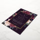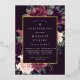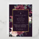 Chic florale Taufe oder Taufeinladung mit einer Grenze von bordeauxroten Marsala lila, rot rosa und staubblauen Blumen, üppiges botanisches Blattwerk, Grün und Goldfolien. Persönlich gestalten Sie Ihre Kirchenfeier und feiern Sie Details in modernen Schriften auf einem lila, dunklen Hintergrund.
