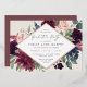 Die elegante Blumenstuhlparty lädt mit einem rautenförmigen Rahmen aus Aquarellfarben und Blattwerk in Bordeaux, lila, staubiger Rose, Rosa, staubigen Blau und dunklem Salbei grün und mit Rose Goldfolie-Trimm. Personalisieren Sie die Details Ihrer Graduierungsparty.