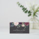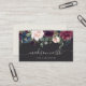 Elegante florale Visitenkarten mit Ihrem Namen und Geschäftsnamen oder Titel in einer schicken Kombination aus Blockschrift und handgeschriebenen Schriftzeichen, ergänzt durch ein üppiges Aquarellbouquet aus staubigen Schmucktönen-Blume und Grünpflanzen auf einem Asche-schwarzen Hintergrund. Fügen Sie Ihre Kontaktinformationen auf der Rückseite hinzu.