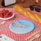 Plum Blossom und Glass Wind Chime auf Light Blue Pappteller