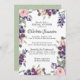 Helles und luftiges Blumendesign mit rosafarbenen Rosen und lila Wildblumen. Elegant Boho Chic. Sehr modern und angesagt, aber dennoch elegant. Der Name der zukünftigen Braut ist in einem sehr extravaganten Schriftart geschrieben, der sie wirklich hervorhebt. Die Rückseite der Einladung ist weich Salbei grün mit einem gedämpften Blatt Muster. Vorlage ist einfach zu anpassen.