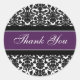 Hochzeit Dankeschön Umschlag Aufkleber Aufkleber in eleganter Aubergine dunkel lila, grau und weiß klassische Blumenstaub Vintage Muster, delikat und hübsch.