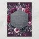 A dramatic palette of deep plum and charcoal gray defines this moody botanical design. Darkly romantic peonies and anemones with midnight centers create an atmospheric aesthetic. Muted pink accents and rich foliage add depth and dimension to the artistic floral display. This aesthetic is ideal for a sophisticated evening event during the cooler months.