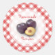 Anpassbare Retro-Aufkleber für hausgemachte Pflaumenkonfitüren, Gelees, Marmelade oder Konserven mit frischen Pflaumen auf roten und weißen Gingham Tischdecken. Sie können auf dem Deckel oder auf dem Glas selbst festgehalten werden und eine personalisierte Sammlung bilden. Weitere Obstkleber sind ebenfalls erhältlich!