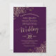 Diese wunderschöne Hochzeitseinladung beinhaltet eine lakate Goldskriptkalligraphie und Imitate-Folienrollen und Wirbel auf einem lila Hintergrund aus Marmor. Extravagant, elegant, stilvoll und elegant, das üppige und glamouröse Ambiente dieses einladenden Hotels wird Ihre Hochzeitsgäste beeindrucken.