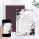 Mit diesem trendigen Design mit lila und eukalyptusblühenden Botanischen Elementen aus Pflaume, Imitaten goldenen Eckelementen aus Pflaume, lila Rahmen aus Pflaume und Marmorhintergrund aus Imitaten schaffen Sie die perfekte Brautdusche. Ideal für Herbst und Winter. Copyright Elegant Invites, alle Rechte vorbehalten.