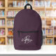 Dieser personalisierte Rucksack verfügt über ein Monogramm und einen Vornamen in modernem Grauton und Weiß auf einem stilvollen lila Hintergrund.