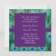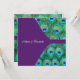 Elegante lila smaragdgrüne, königsblaue und aquamarine Pfauenfedern quadratische Hochzeitseinladung. Lila Pfauenhochzeiten. Passen Sie Ihren Wünschen nach Schriftart und Schriftart an.