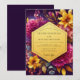 This design features a vibrant and dramatic arrangement of florals set against a deep, moody background. Luminous magenta dahlias and golden yellow lilies burst with color, creating a feeling of opulent romance. The rich, jewel-toned palette of plum, gold, and fuchsia makes this a truly striking choice for a luxurious affair.
