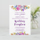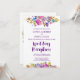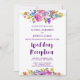 Dieses Pflaumenmonogramm hinter der Hochzeitsempfehlung ist perfekt für eine Blumenhochzeit. Das Design besticht durch helle Magenta, rosa, lila und blaue Blumen und einen hübschen Schriftart mit kühnen Schriften. Personalisieren Sie die Front mit Ihren Hochzeitsdetails. Personalisieren Sie den Blumenkranz mit den Initialen der Braut und des Bräutigams.