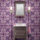 Rich plum-colored backdrop paired with intricate baroque floral scrolls.