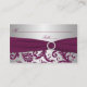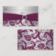 Diese plum- und silbergraue Damast-Platzkarte hat ein farbiges, PRINTIERTES Pflaumenband und eine prägnante Juwelenfibel, die der unten gezeigten Hochzeitseinladung entspricht. Wenn Sie weitere passende Artikel benötigen, senden Sie Ihre Anfrage bitte an niteowlstudio@gmail.com.