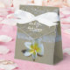 Dieses Stranddesign besticht durch eine gelbe und weiße Frangipani/Plumeria-Blume auf dem Sand. Gelbe und weiße Blume mit Strandhintergrund, elegant gerahmt mit einem schlichten, undurchsichtigen Hintergrund. Diese beliebte tropische hawaiianische Blume eignet sich ideal für eine Strandhochzeit. Elegante Hochzeitsgönnchen am Strand mit modernem Design. Auch die passenden Hochzeitseinladungen und andere Schreibwaren sind verfügbar.