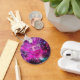 Magenta Schlüsselanhänger mit "PLUR"; das Akronym, das für "Peace Liebe Unity Respect" in der Rave-Kultur steht.