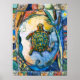 Auf seiner Reise bewegt sich die Bruderschildkröte durch das Feuchtgebiet, umgeben von Natursymbolen. Von den Kindern der Erde Serie von P. Allingham Carlson. Poster.