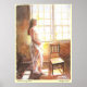 Sonnenlicht strömt durch ein Fenster, beleuchtet eine junge Frau in Gold, wie sie steht und Träume von der Zukunft. Von Künstler P Allingham Carlson, ein neues Werk in Aquarell.