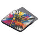 L'Éclairage Néon : Les orbites du crâne brillent intensément avec un effet néon/laser bicolore : un œil est d'un bleu turquoise électrique et l'autre est d'un rose magenta vibrant.