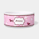 Geben Sie Ihrem verwöhnten Pooch die beste Schüssel mit diesem modernen mädchenhaften Design mit niedlichen Mustern von Dackel, Scottie und Poodle Silhouetten hübsch in rosa Schals und Herzklangen. Personalisieren Sie Ihre persönlichen Daten mit dem Namen Ihres Haustieres. Silhouetten aus Originalzeichnungen (c) 2013 Andie of Off-Leash Art..