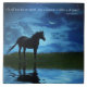 Ein schönes Pferd, das sich in einem Wasserteich mit hübschem Sternenhimmel, Wolken und einem Halbmond reflektiert. Edgar Allan Poes berühmte Linie aus seinem Gedicht Ein Traum im Traum. Eine schöne Kunstfliese, die phantastisch gerahmt aussieht.