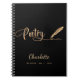 Ein schicker schwarzer Hintergrund. Mit dem Text: Poesie und mit Federstift dekoriert. Personalisieren und fügen Sie einen Namen und Text (oder löschen) hinzu