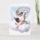 Eine himmlische Grußkarte zeigt einen Glasschatten mit Kirub, der auf einer Wolke sitzt und die folgenden Worte liest: "Wenn du oben sitzt, kannst du nichts auf die darunter liegenden platzen. Deine Entlastung, könnte für immer einen Fleck auf ihrem Leben verlassen haben."