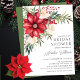 Diese elegante Brautdusche im Winter lädt zu herrlichen roten Poinsettien-Blume mit Grünpflanzen ein. Die Einladung ist ideal, um die bevorstehende Braut während der Ferienzeit zu feiern. Auf der Vorderseite der Einladung befinden sich die roten Poinsettia-Blume und das Grün sowie der Name, das Datum, die Uhrzeit und die Lage der Braut. Das Gesamtdesign ist festlich und raffiniert, und die Einladung wird Ihre Gäste begeistern.