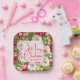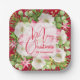 Personalisierte quadratische Teller mit modernen, eleganten Blume und einer rosa Poinsettia mit frohen Weihnachten und Ihrem Namen in schicker Schrift. PASSENDE Artikel in unserem Geschäft.