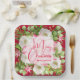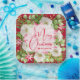 Personalisierte quadratische große Teller mit modernen, eleganten Blume und einer rosa Poinsettia mit frohen Weihnachten und Ihrem Namen in schicker Schrift. PASSENDE Artikel in unserem Geschäft.