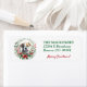 Auf diesem Holiday-Rücksendetikett ist ein bezaubernder brauner und weißer Bulldog Welpe in einem grünen Weihnachtskranz gerahmt, mit einer roten Poinsettie unten. Ihr benutzerdefinierter Text ist rechts grün, unten steht ein Textfeld für einen Gruß in rot.