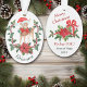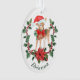 Hier ist ein niedliches Holiday-Ornament für Großeltern oder Eltern, die einem Kind, besonders einem kleinen Mädchen, etwas geben. An der Vorderseite des Ornaments befindet sich eine bezaubernde Hirschbraue mit einer rot-weißen Weihnachtsmannmütze und einem roten Bogen. Die Stadt steht hinter einer hübschen Poinsettia und einem heiligen Kranz. Der Name Ihres Kindes ist in grün in gebogenem Text unten. Auf der Rückseite des Ornaments befindet sich ein passender Poinsettienbouquet vor einem Geschenkpaket und 4 Textfelder für Ihre individuelle Nachricht. Einfach anzupassen, und es macht einen wunderbaren Sake.