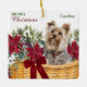 Poinsettia Yorkie Terrier Christmas Basket Keramikornament