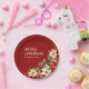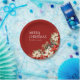 Frohe Weihnachten und Familienname Poinsettias Rundpapier Platte. Maßgeschneiderter Text in der oberen links Ecke mit Poinsettias, Beeren und Blattwerk in der unteren rechten Ecke, um Text und Design in ausgewogener, weißer Schrift auf rotem Hintergrund zu machen. Ein zeitloses Design mit Winterblumen für Ihre Weihnachtszeit oder Veranstaltungen Jahr für Jahr. Erhältlich in verschiedenen Größen und Hintergrundfarben. Mischung und Übereinstimmung Sehen Sie sich unsere Weihnachtskollektion mit The Watercolor Poinsettia design an, um Ihren Urlaub, Ihre Weihnachtsfeier, Ihr Abendessen oder Ihre zeitlosen Geschenkideen zu einem angenehmen und einheitlichen Look zu machen.