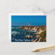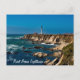 Die wunderschöne Postkarte zeigt das landschaftliche Tageslichtfoto der Küste und den berühmten Point Arena Leuchtturm, Mendocino Landkreis, Kalifornien.
