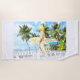 Aloha! Point Break ! Träumen Sie Landschaft mit einem Mädchen, das uns zum Surfen einlädt und Spaß, Sport, in voller Freiheit. Zeichn erstellt mit der Computergrafik 3d 2d.