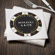 Coole, schwarze, weiße, rote und goldene Casino Poker Chip Hochzeitsnapkins. Personalisieren Sie es mit Ihren Veranstaltungsdetails. Ideal für einen Empfang, Brautparty, oder Junggeselle / Junggeselinnen-Abschied.