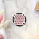 Poker chips with a vibrant pink floral pattern set against a white background. Bold black and white segments circle the edges, creating a striking contrast.