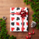 Poker, der Karten Anzug Verpackungspapier abspielt. Fun Muster Design mit Herz, Diamanten, Clubs und Pik. Schwarz-Rot-Weiß-Kartenspiel-Farben. Niedliche Geschenkidee für Hochzeitsgeschenke von Las Vegas. Auch für Bridge- und Black Jack-Spieler geeignet.