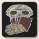 Der Poker Player zeigt ein Skelett, das Poker mit Karten spielt, die vor dem Gesicht gehalten werden.